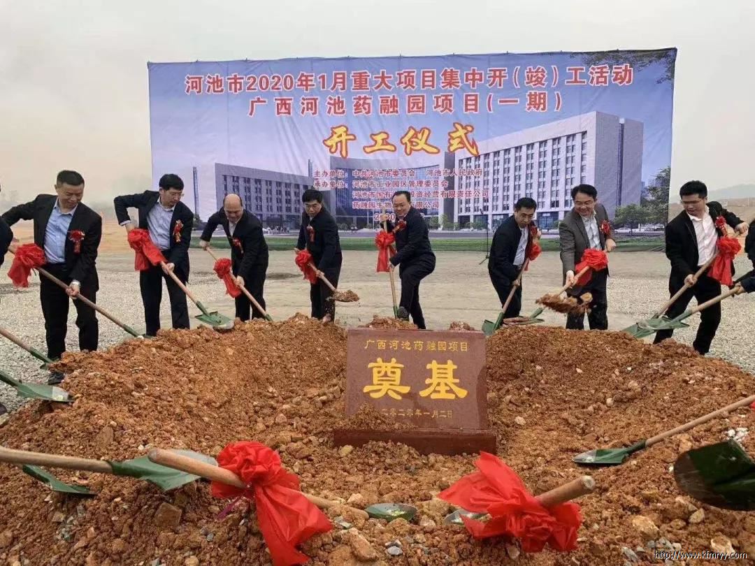 2020年1月2日,廣西河池藥融園(一期)開工奠基儀式圓滿舉行。河池市市委副書記、統(tǒng)戰(zhàn)部部長、市工業(yè)園區(qū)黨工委書記唐標文宣布廣西河池藥融園一期項目開工。首批入駐河池藥融園企業(yè)及來自全國各地的生物醫(yī)藥行業(yè)的企業(yè)家們共同見證了這一歷史時刻。